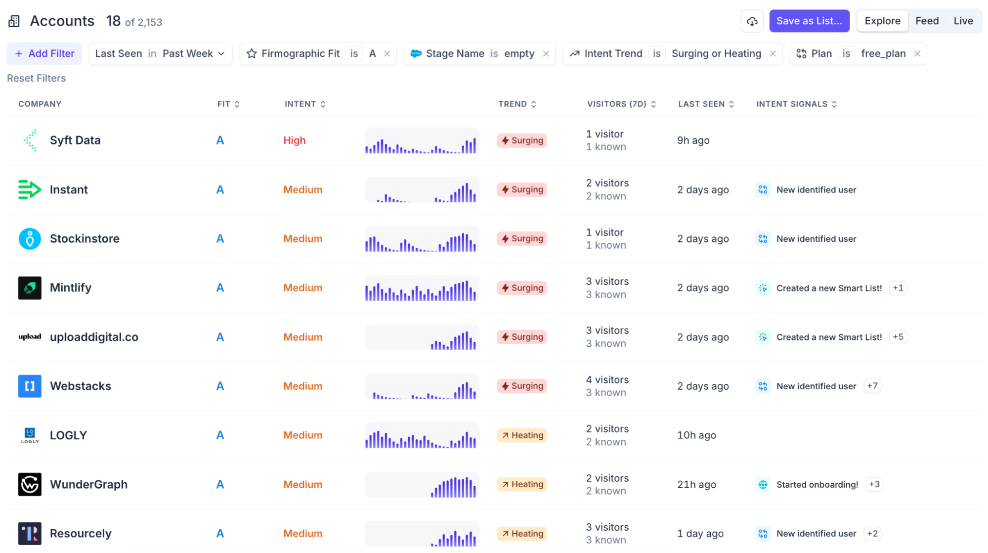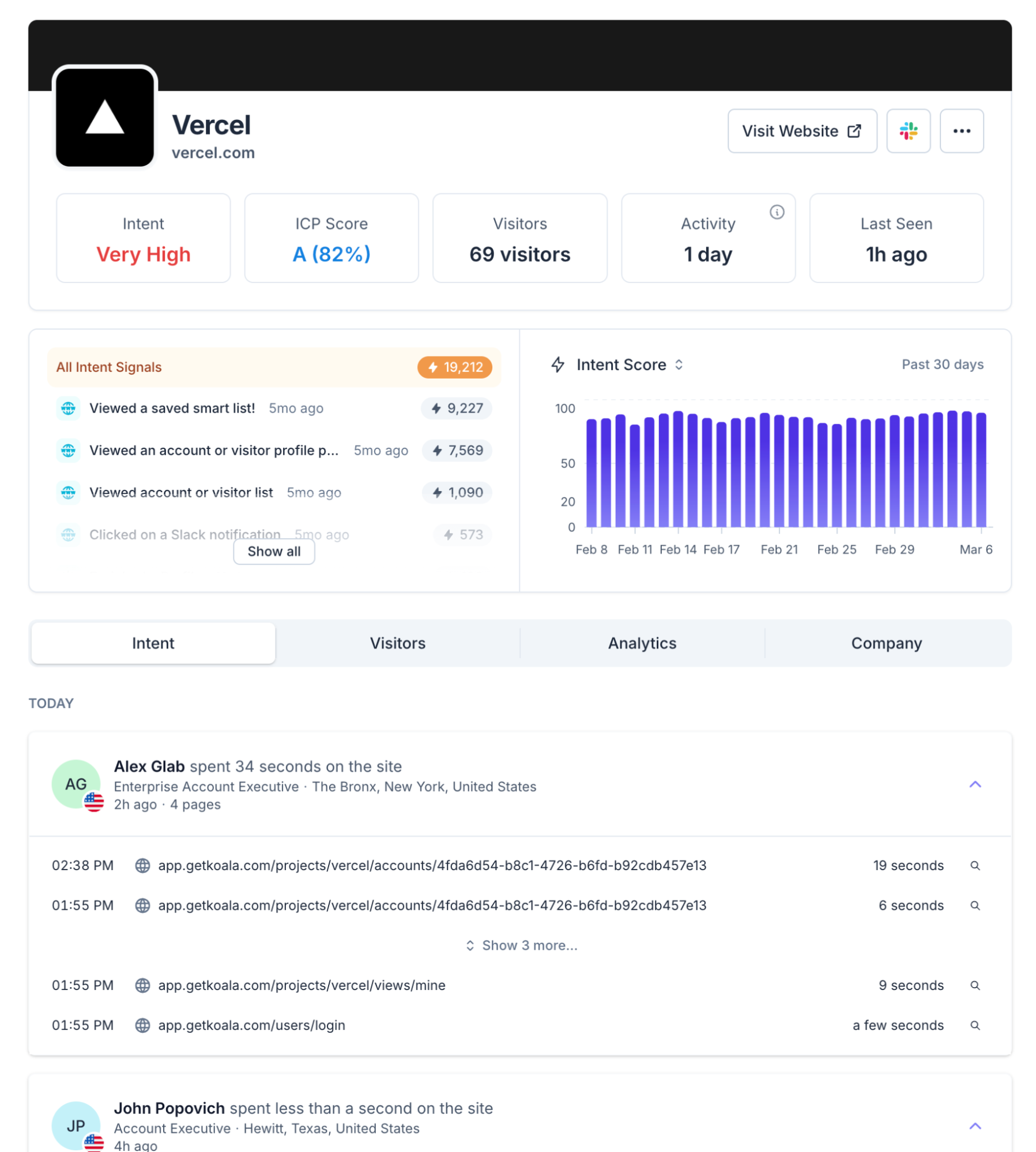 While it is true that you probably only want to interrupt their daily workflow with a high-intent alert, once you surface something to them, they are going to want to do deep research and need a full analytics tool to support that. As such, we've landed on a companion research app that shows you the complete picture of a prospect: