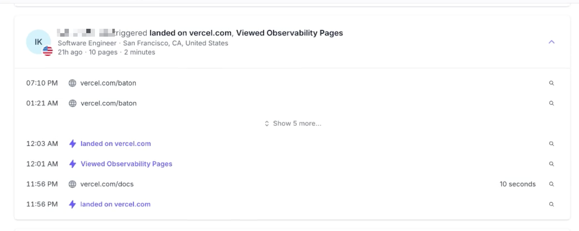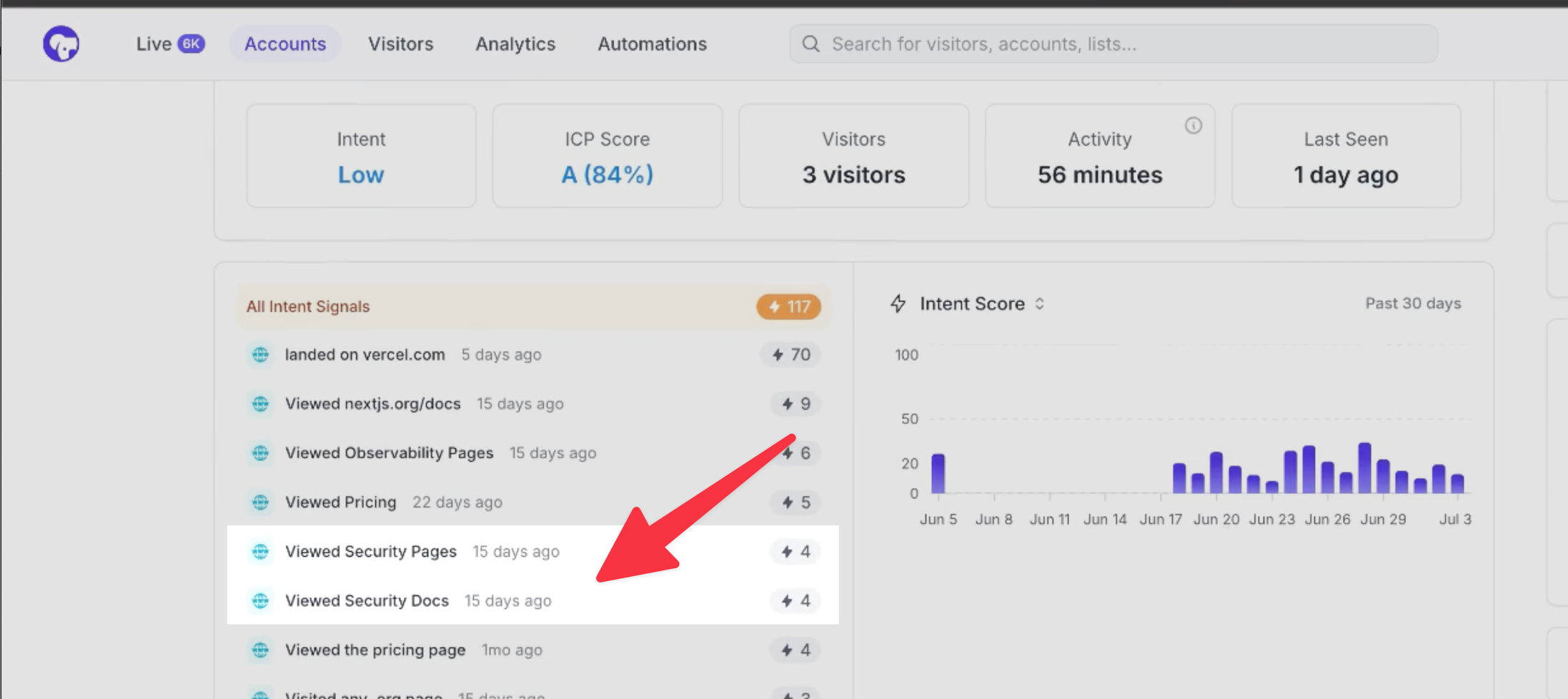 When we see people look at our security page, product-specific pages like Next.JS and pricing page, we know that’s a strong signal for us