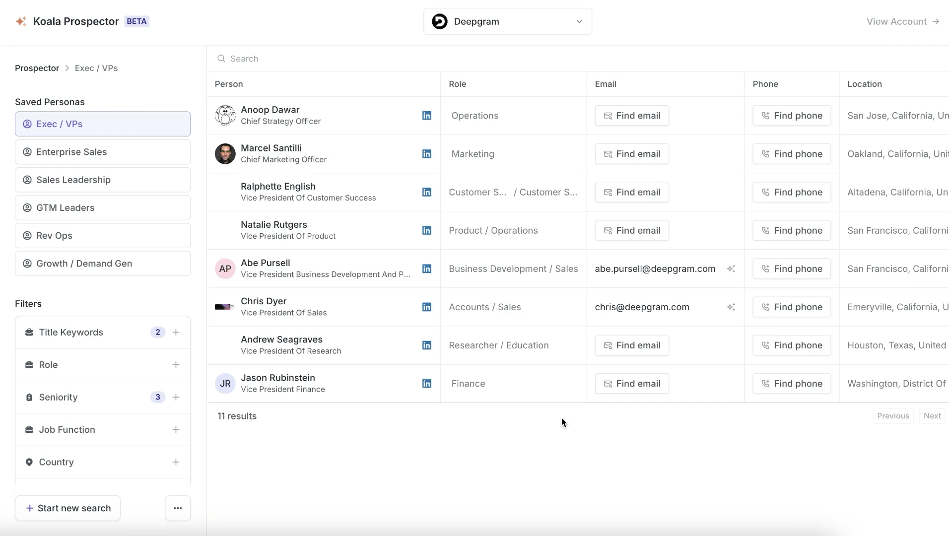 With Koala Prospector, you can equip your sellers with an end-to-end workflow—from prioritizing accounts to conducting deep research, and now, identifying the buyer committees, all within Koala.