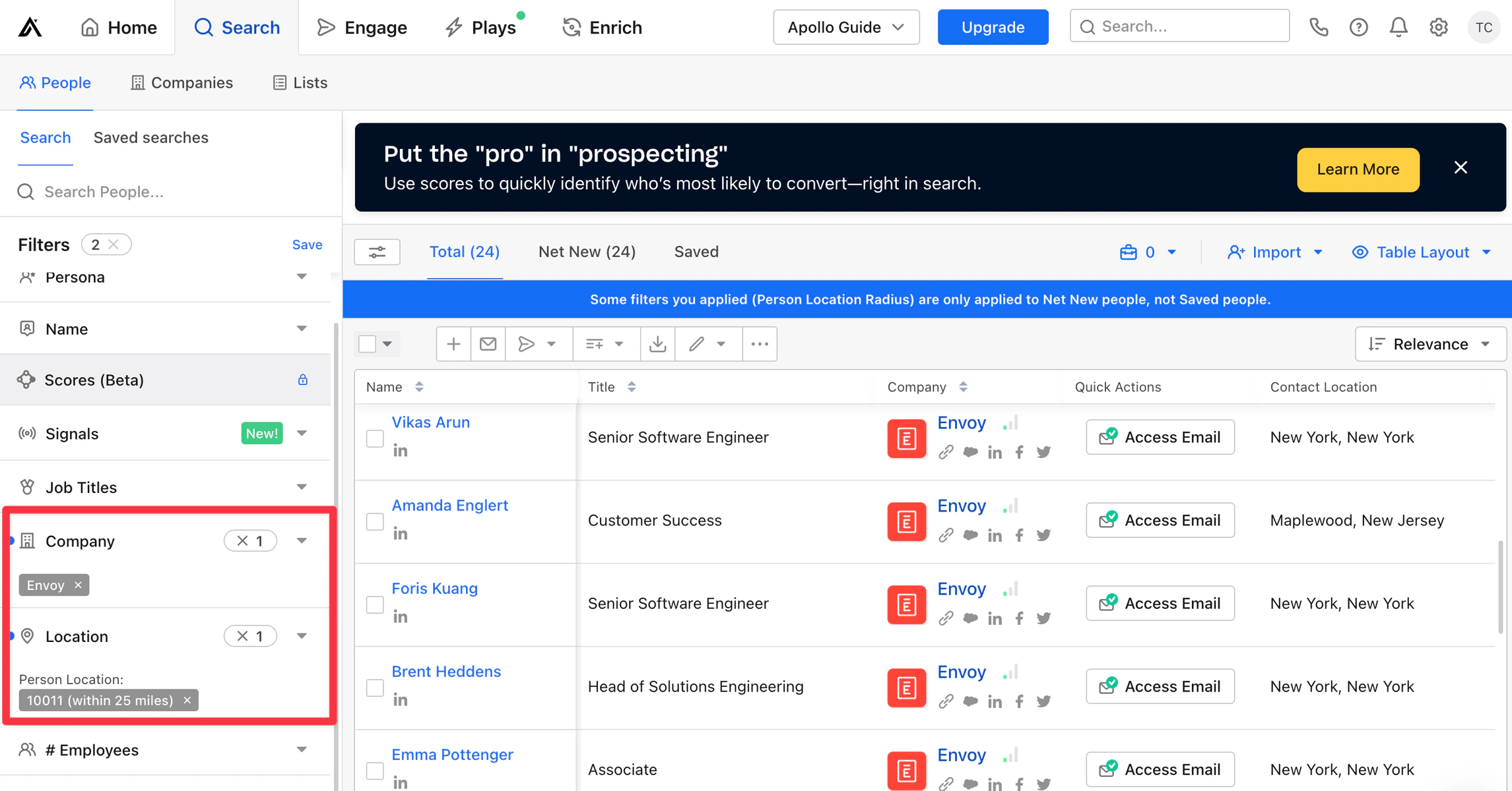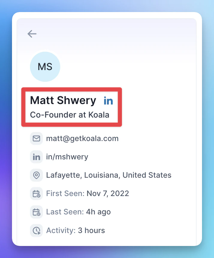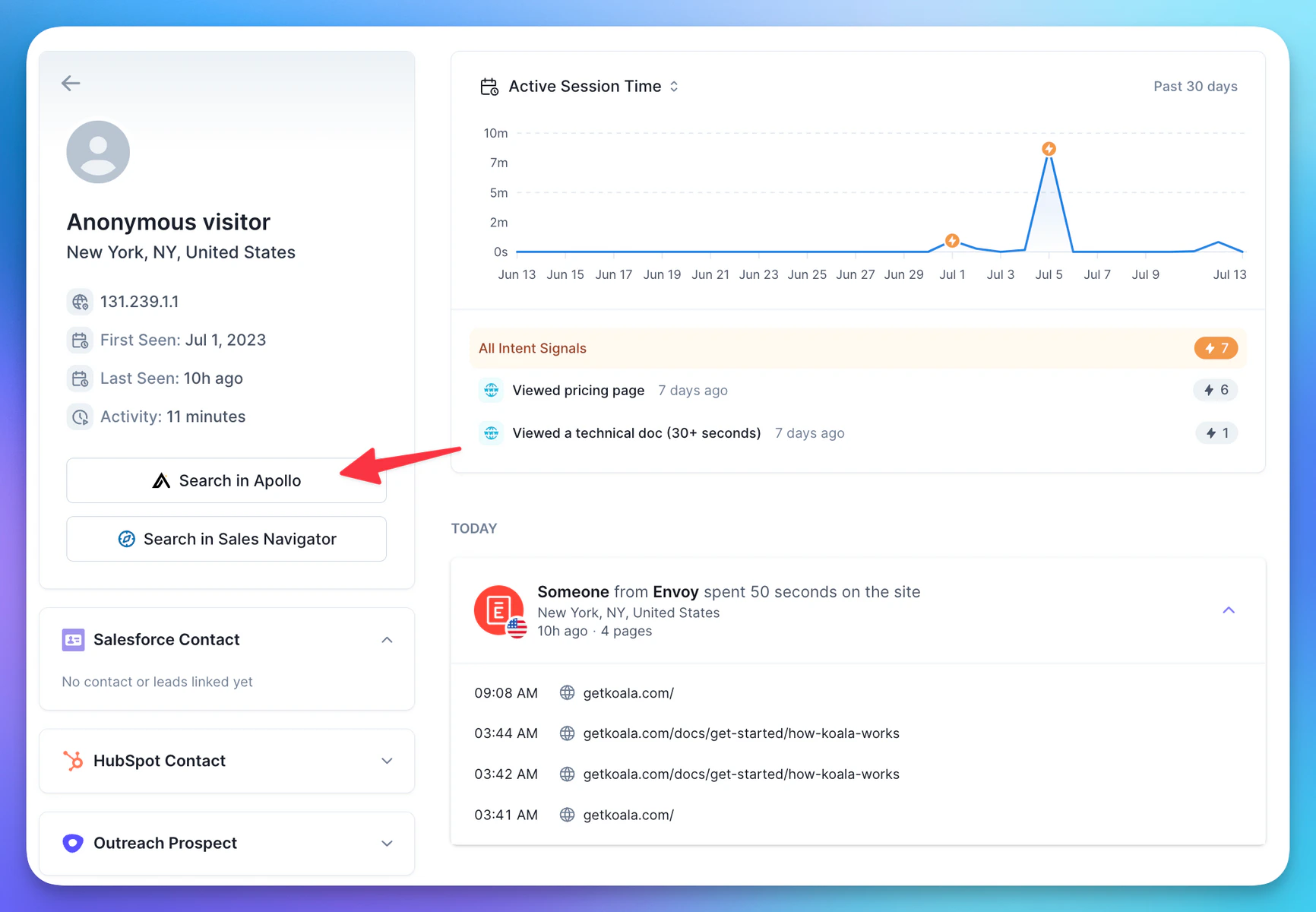 When you come across an anonymous profile in Koala, you can click “Search in Apollo” to prospect into the account:
