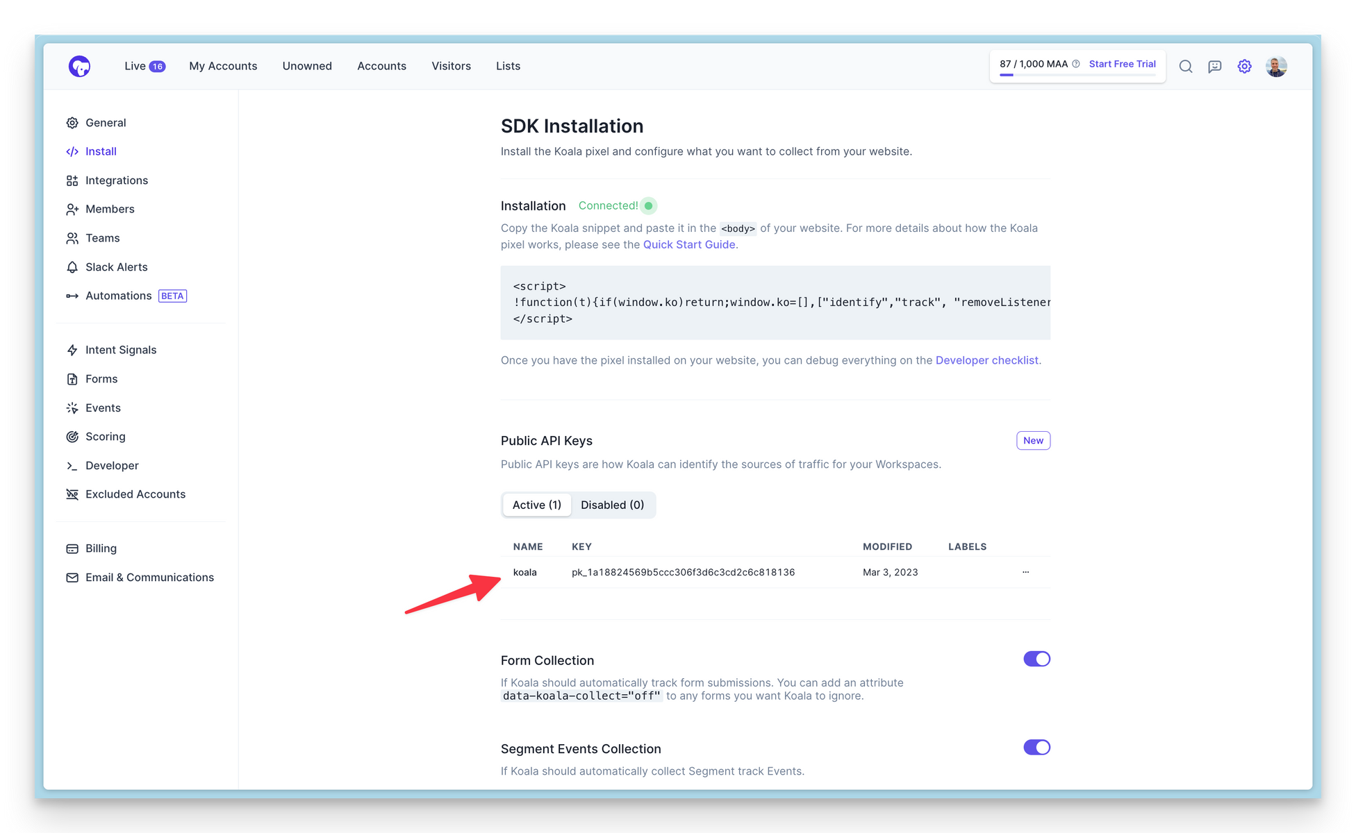 Find your Public API Key here: https://app.getkoala.com/goto/settings/install