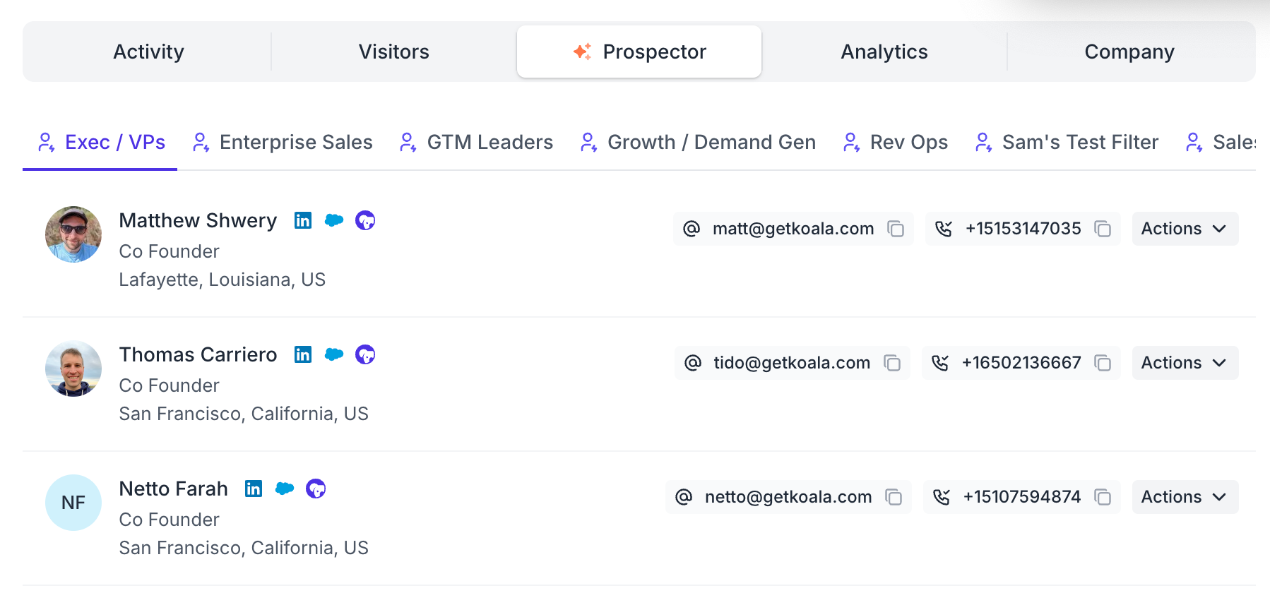 2. Account-Level Prospect Tab: An account-specific prospecting view.
