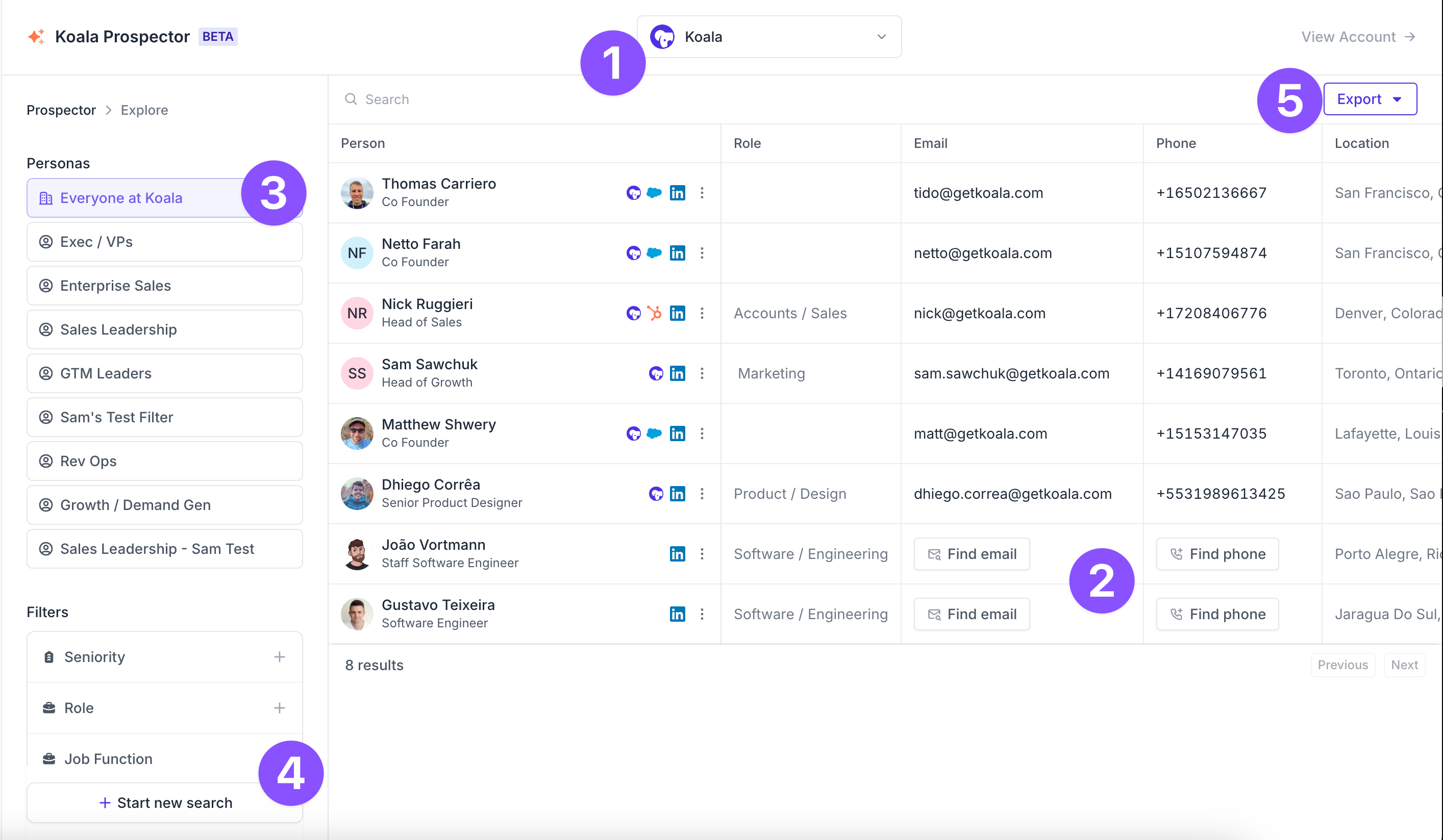 With Koala Prospector, you can source email and phone numbers using waterfall enrichment across 15 data sources.